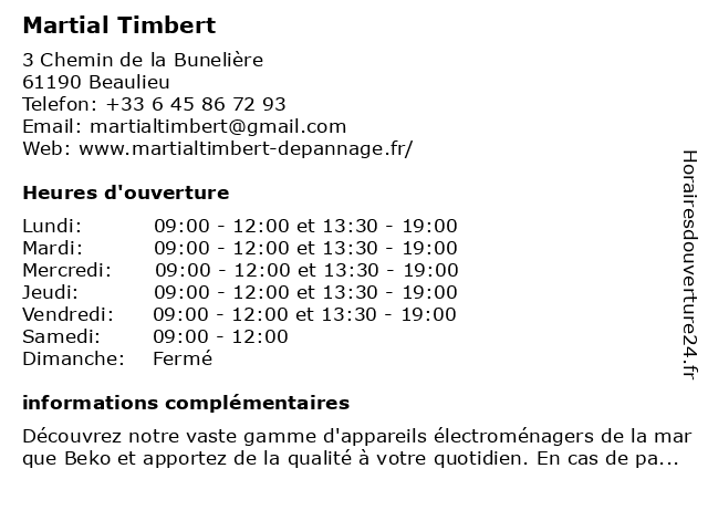 | Lundi | 09:00-12:00 et 13:30-19:00 |