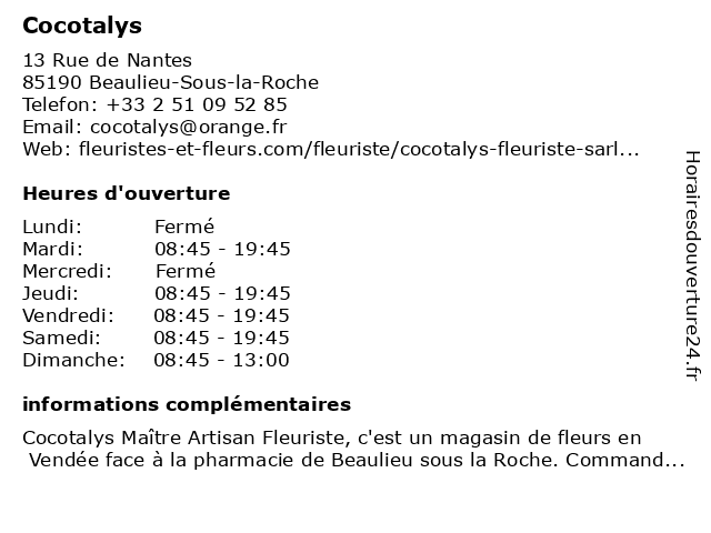 1 Artisans Fleuristes de France - Cocotalys (Distance: 6,85 km) 1 place de L'Aire Buron, 85190 Aizenay artisans, bouquets, cocotalys, de, fleuristes, flowers, france, the funeral, wedding collection |