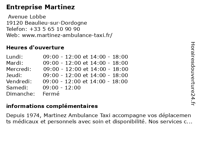 1 Entreprise Martinez (Distance: 5,33 km) 112 Avenue de la République, 46130 Biars-sur-Cère entreprise, martinez 2 Entreprise Martinez (Distance: 18,91 km) Avenue du Général de Gaulle, 46600 Martel entreprise, martinez 4 Dr Elisabet Vecino Martinez - Médecin généraliste (Distance: 12,10 km) - Avenue Docteur Roux, 46400 Saint-Céré consultation, docteur, dr, elisabet, généraliste, martinez, med, médecin, médecine, traitement, vecino 5 Martinez Christine Dominique (Distance: 40,82 km) Chantegril , 19270 Sadroc christine, dominique, martinez, restaurants 6 AXA Assurance Christophe Dufrechon (Distance: 1,44 km) 29 Rue du Général de Gaulle, 19120 Beaulieu-sur-Dordogne assurance, assurance appartement, assurance auto, assurance entreprise, assurance epargne, assurance habitation, assurance maison, assurance professionnelle, assurance santé, assurance voiture, axa, banque, christophe, dufrechon |