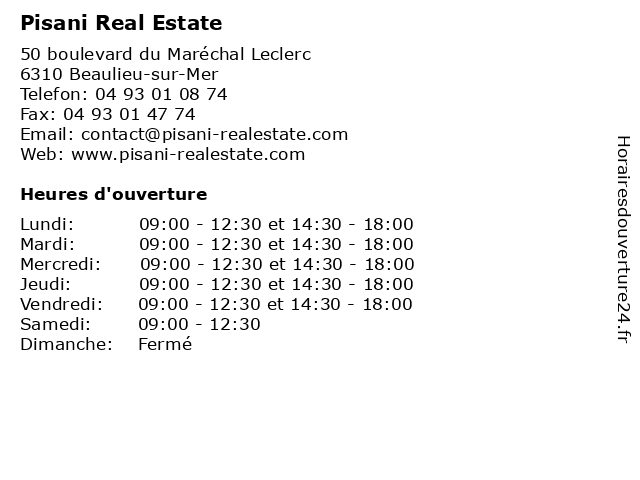 1 Pisani Real Estate (Distance: 0,09 km) 42 boulevard du Maréchal Leclerc, 06310 Beaulieu Sur Mer agence, estate, gestion, immobilier, location, pisani, real, transaction, vente 2 Agence Immobilière Nicolas Pisani & Associés (Distance: 0,14 km) 1 Rue Paul Doumer, 06310 Beaulieu-sur-Mer agence, associés, gestion, immobilier, immobilière, location, luxe, nicolas, pisani, transaction, vente 3 Hermitage Riviera - Real Estate (Distance: 0,29 km) 20 Boulevard Marinoni, 06310 Beaulieu Sur Mer estate, gestion, hermitage, immobilier, location, real, riviera, transaction, vente 4 Nicolas Pisani & Laurent Romor (Distance: 1,84 km) 9 avenue Sadi Carnot, 06230 Villefranche-sur-Mer agence, associés, gestion, immobilier, laurent, location, nicolas, pisani, romor, transaction, vente 5 CGF International Prestige Real Estate (Distance: 5,01 km) 25 Avenue Desambrois, 06000 Nice agence, cgf, estate, gestion, immobilier, international, location, prestige, real, transaction, vente 6 Green Acres (Societe Hkb Real Estate) (Distance: 5,70 km) 12 Rue De La Buffa, 06000 Nice acres, apartment rentals, estate, green, hkb, home sales, real, real estate, societe |