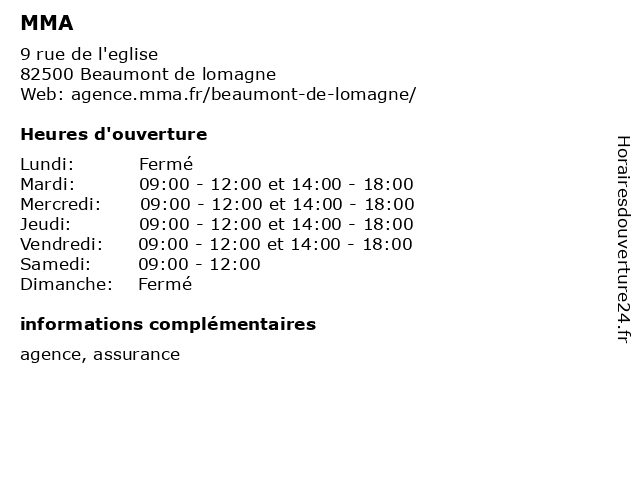 | Mardi | 09:00-12:00 et 14:00-18:00 |