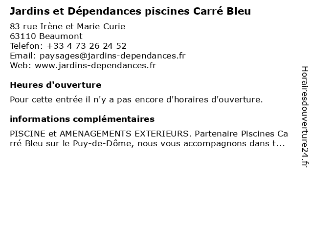 | Appeler Jardins et Dépendances piscines Carré Bleu | |