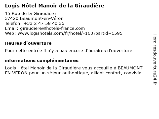 | Appeler Logis Hôtel Manoir de la Giraudière | |