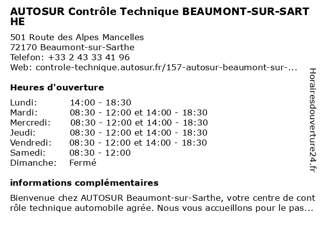 Termes de recherche pour AUTOSUR Contrôle Technique BEAUMONT-SUR-SARTHE:sur, beaumont, sarthe, autosur, controle, technique |