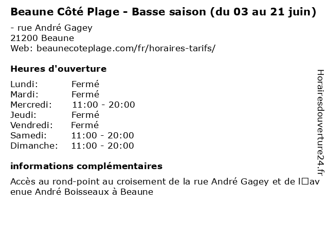 | Dimanche | 11:00-20:00 |