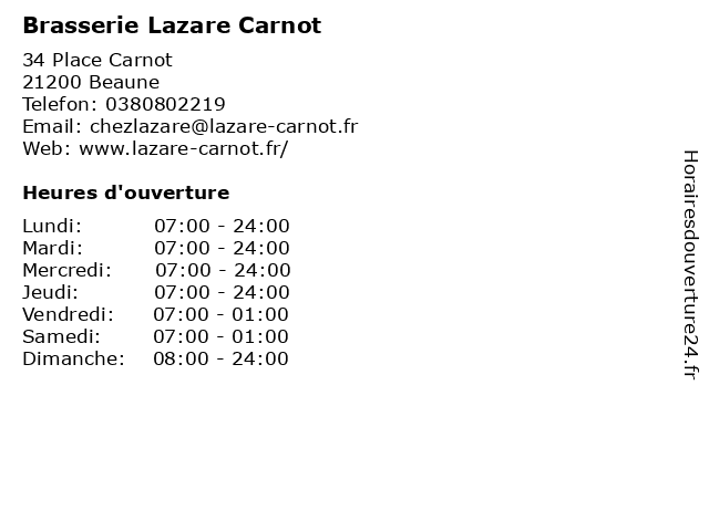 | Samedi | 07:00-01:00 |