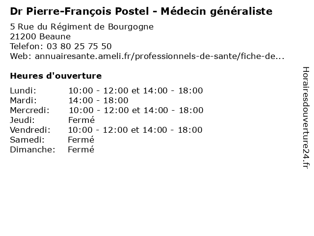 1 Dr. Alix Postel - Médecin Généraliste (Distance: 0,01 km) 5 Rue du Régiment de Bourgogne, 21200 Beaune alix, consultation, docteur, dr., généraliste, med, médecin, médecine, postel, traitement 2 Dr. Pierre-François Postel - Médecin Généraliste (Distance: 0,01 km) 5 Rue du Régiment de Bourgogne, 21200 Beaune consultation, docteur, dr., françois, généraliste, med, médecin, médecine, pierre, postel, traitement 3 Cabinet François & Associés (Distance: 1,36 km) 12 Avenue Charles Jaffelin, 21200 Beaune associés, cabinet, françois 4 Dr François Devillard - Médecin généraliste (Distance: 6,12 km) 7 Route de Volnay,, 21190 Meursault devillard, docteur, dr, françois, generaliste, généraliste, medical, médecin, soin 5 Domaine François Mikulski (Distance: 6,90 km) 7 Route Départementale 974, 21190 Meursault domaine, françois, meursault, mikulski, vignoble, vins 6 Tonnellerie François Frères (Distance: 10,32 km) - Route départementale 17, 21190 Saint Romain bois, fabrication, françois, frères, fûts, tonnellerie |