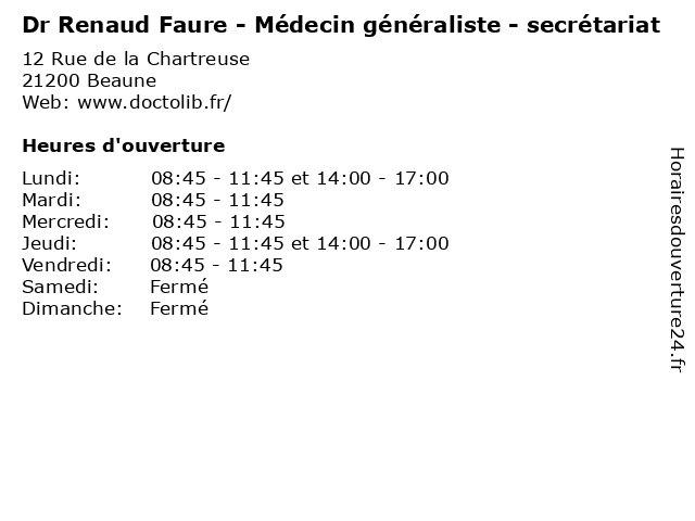 1 Dr Hugues Faure - Médecin généraliste (Distance: 0,00 km) 12 Rue de la Chartreuse, 21200 Beaune docteur, dr, faure, generaliste, généraliste, hugues, medical, médecin, soin 2 École primaire publique Marcel Renaud (Distance: 23,31 km) 1 Rue Roger, 02880 Chivres ecole, education, marcel, maternelle, primaire, publique, renaud, services, école 3 Renaud Distribution (Distance: 26,10 km) - ZA champ Chassy, 71380 Châtenoy-en-Bresse approvisionnement, distribution, fleuristes, fournisseur, grossiste, professionnels, renaud 4 Dr Laurence Renaud - Anesthésiste réanimateur (Distance: 26,72 km) 4 Rue Capitaine Drillien, 71321 Chalon-sur-Saône anesthésiste, centre, chalon, dr, hospitalier, laurence, medecin, renaud, réanimateur, saône, soins, sur, urgence, urgentiste 5 DOCTEURS CELINE ET RENAUD DELPIERRE (Distance: 27,62 km) 3 Route De Chalon, 71620 Saint Martin en Bresse celine, delpierre, docteurs, et, renaud 6 Dombrowski Franck Renaud (Distance: 35,61 km) 5 Allee De Chambery, 21000 Dijon dombrowski, franck, renaud, restaurants |
