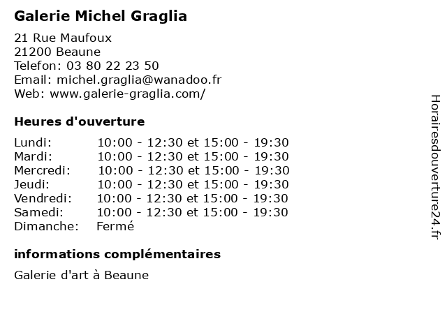 | Samedi | 10:00-12:30 et 15:00-19:30 |