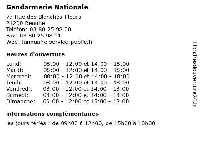 1 Gendarmerie Nationale (Distance: 13,82 km) 13 Rue Thurot, 21700 Nuits-Saint-Georges brigade, commandant, communauté, gendarme, gendarmerie, nationale, proximité, sécurité 2 Gendarmerie Nationale (Distance: 15,79 km) 4 Route de Saint-Loup de la Salle, 71150 Chagny brigade, commandant, communauté, gendarme, gendarmerie, nationale, proximité, sécurité 3 Gendarmerie Nationale (Distance: 18,64 km) 15 Route d'Autun, 21800 Nolay brigade, commandant, communauté, gendarme, gendarmerie, nationale, proximité, sécurité 4 Gendarmerie Nationale - Peloton motorisé (Distance: 0,85 km) - Autoroute A6, sortie 24.1, 21200 Beaune brigade, communauté, gendarme, gendarmerie, motorisé, nationale, peloton, proximité, sécurité 5 Gendarmerie Nationale (Distance: 24,15 km) 36 Route de Dijon, 21220 Gevrey-Chambertin brigade, commandant, communauté, gendarme, gendarmerie, nationale, proximité, sécurité 6 Gendarmerie Nationale - Peloton motorisé (Distance: 26,14 km) - Autoroute A6, gare de péage de Châlon-Nord, 71880 Châtenoy-le-Royal brigade, communauté, gendarme, gendarmerie, motorisé, nationale, peloton, proximité, sécurité  |