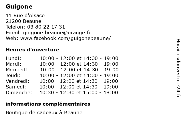 Lundi | 10:00-12:00 et 14:30-19:00 |