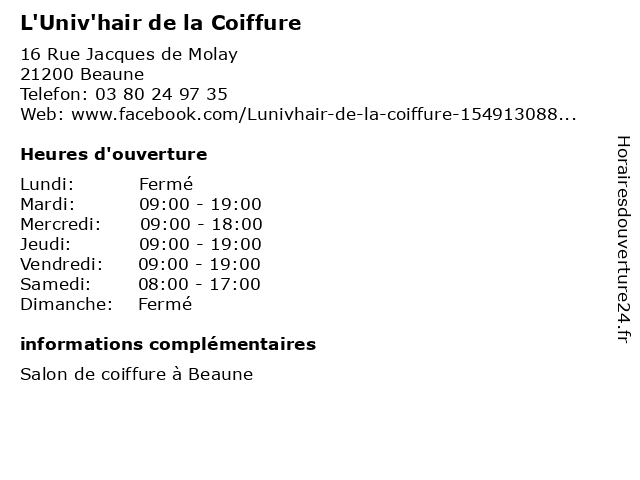Termes de recherche pour L'Univ'hair de la Coiffure:la, de, beauté, coiffure, coiffures, coloristes, l'univ'hair |