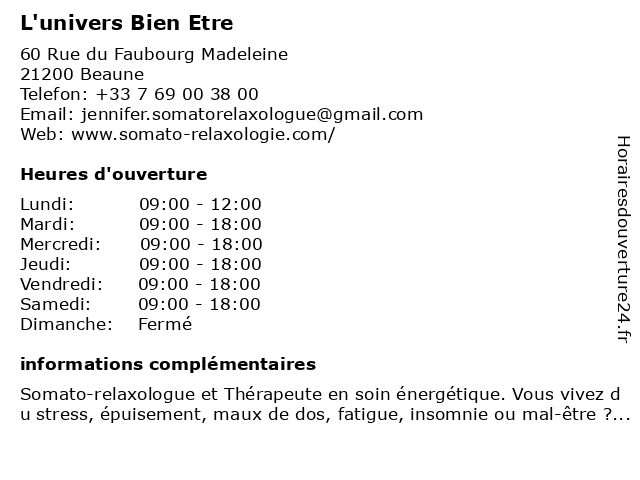 Horaires d'ouverture |