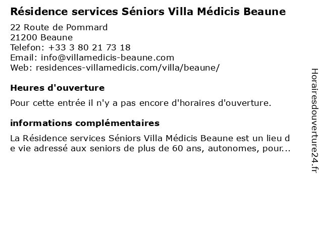 | Appeler Résidence services Séniors Villa Médicis Beaune | |