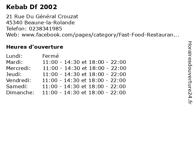 | Mardi | 11:00-14:30 et 18:00-22:00 |