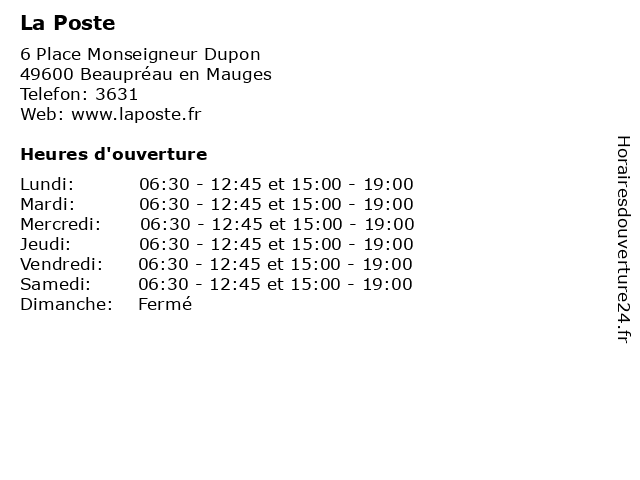 1 La Poste (Distance: 4,83 km) 10 Place de l'Eglise, 44330 La Regrippière colis, express chronopost, expédition, la, poste, réexpédition internationale, service, suivi du courrier 2 La Poste (Distance: 5,66 km) 12 Place de l'Abbé Orthion, 49600 Montrevault-sur-Èvre colis, express chronopost, expédition, la, poste, réexpédition internationale, service, suivi du courrier 3 La Poste (Distance: 6,60 km) 5 Rue Robert Humeau, 49510 Beaupréau en Mauges colis, express chronopost, expédition, la, poste, réexpédition internationale, service, suivi du courrier 4 La Poste (Distance: 9,83 km) 2 Rue des Mauges, 44430 La Boissière-du-Doré agence, assurance, banque, banque postale, bureau de poste, chronopost, colis, courrier, dps, expéditions internationales, la, point, postale, poste, relais, timbres, téléphonie, ups, western union 5 La Poste (Distance: 11,08 km) 2 Rue des Mauges, 49270 Montrevault sur Evre colis, express chronopost, expédition, la, poste, réexpédition internationale, service, suivi du courrier 6 La Poste (Distance: 13,65 km) 1 Place de la Renaissance, 49270 Landemont colis, express chronopost, expédition, la, poste, réexpédition internationale, service, suivi du courrier |