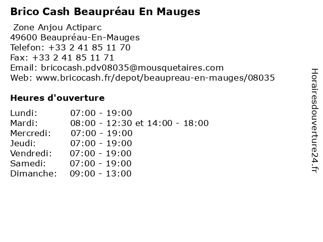 | Mardi | 08:00-12:30 et 14:00-18:00 |