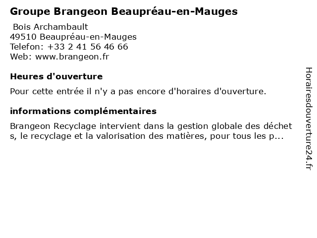 | Appeler Groupe Brangeon Beaupréau-en-Mauges | |