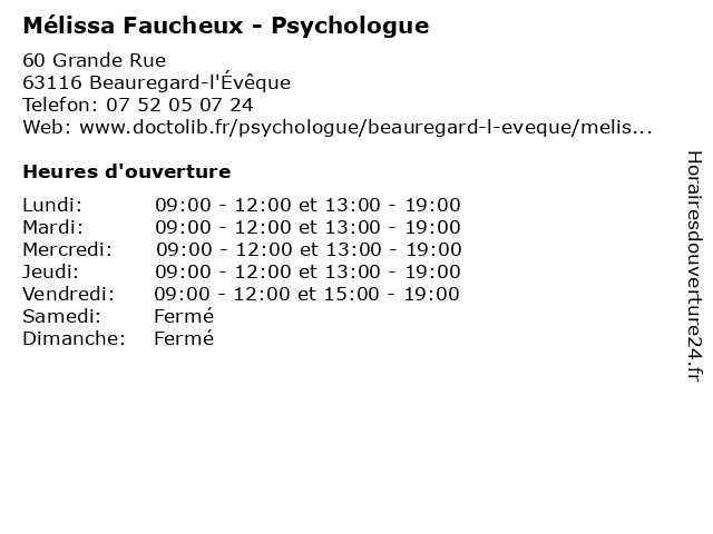 | Mardi | 09:00-12:00 et 13:00-19:00 |