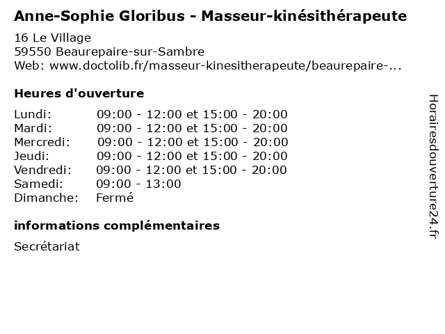 | Mardi | 09:00-12:00 et 15:00-20:00 |