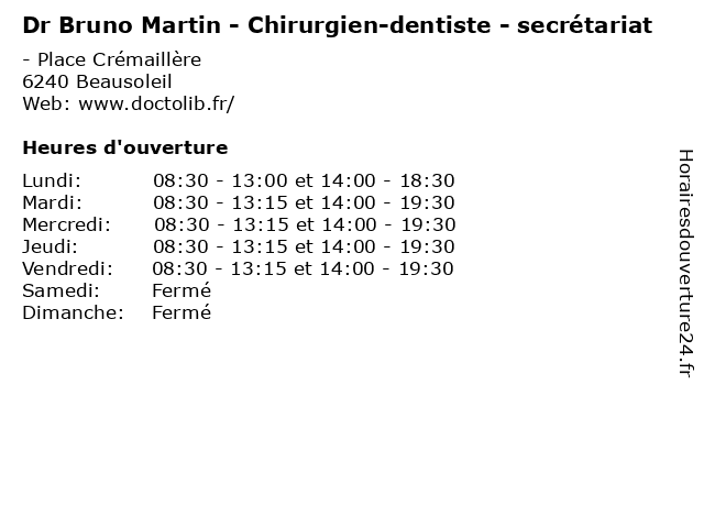 | Mardi | 08:30-13:15 et 14:00-19:30 |