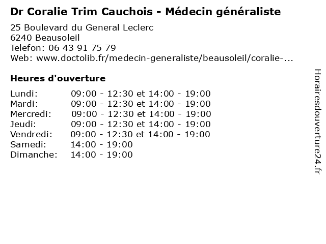 | Mercredi | 09:00-12:30 et 14:00-19:00 |