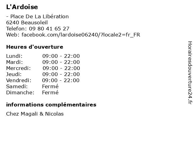 | Lundi | 09:00-22:00 |