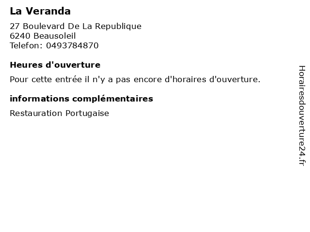 Termes de recherche pour La Veranda:restauration, restaurants, portugaise, véranda |