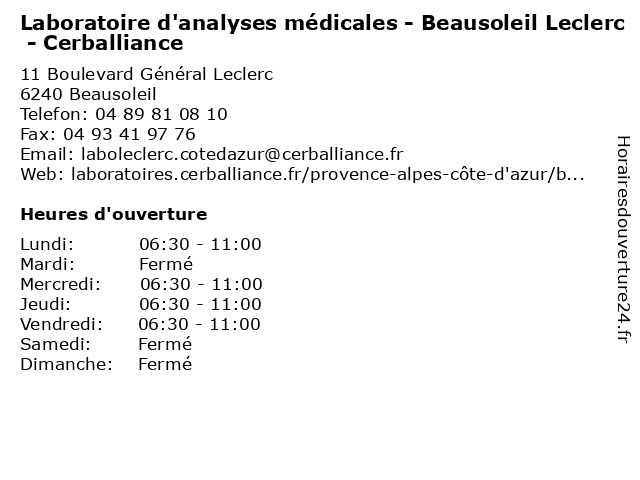 Termes de recherche pour Laboratoire d'analyses médicales - Beausoleil Leclerc - Cerballiance:leclerc, d'analyses, laboratoire, médicales, beausoleil, cerballiance, dépistages |