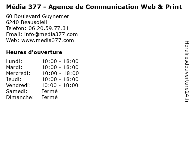 | Vendredi | 10:00-18:00 |