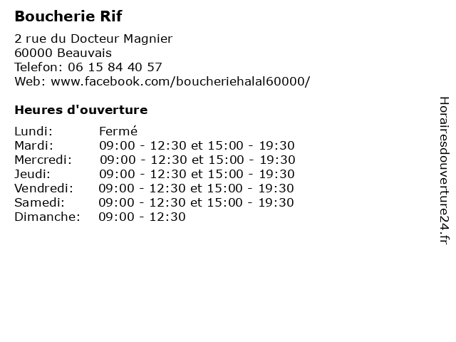 | Mardi | 09:00-12:30 et 15:00-19:30 |