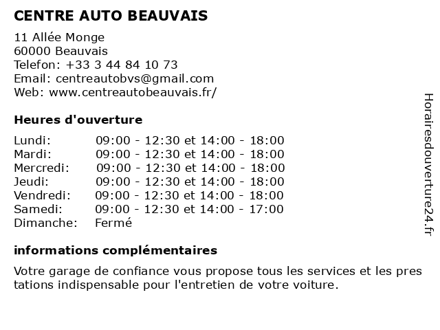 | Lundi | 09:00-12:30 et 14:00-18:00 |