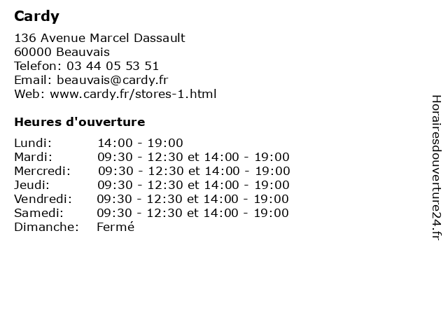 | Mardi | 09:30-12:30 et 14:00-19:00 |