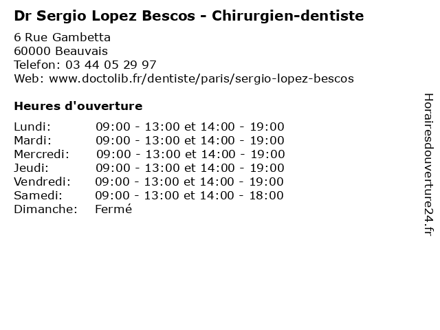| Lundi | 09:00-13:00 et 14:00-19:00 |