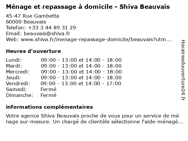 | Lundi | 09:00-13:00 et 14:00-18:00 |