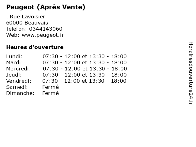 | Lundi | 07:30-12:00 et 13:30-18:00 |