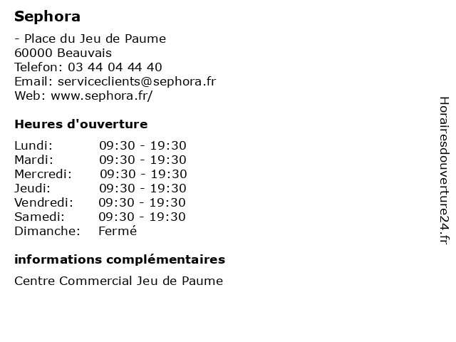 1 SEPHORA BEAUVAIS JEU DE PAUME (Distance: 0,08 km) Rue Jacques de Guéhengnies, 60000 Beauvais beauté, beauvais, carte cadeau, coffret, de, jeu, maquillage, parfum, parfumerie, paume, sephora, soin 2 Sephora (Distance: 36,12 km) - ZAC du Pont des Rayons, 95290 L'Isle Adam beauté, cosmétiques, fards, institut, maquillage, parfum, parfumerie, sephora, vernis 3 SEPHORA TAVERNY (Distance: 47,53 km) Rue Théroigne de Méricourt, 95150 Taverny beauté, carte cadeau, coffret, maquillage, parfum, parfumerie, sephora, soin, taverny 4 Sephora Friedmann - Sage-femme (Distance: 57,38 km) 10 Rue Du Champ Gaillard, 78300 Poissy consultation, docteur, dr, femme, friedmann, med, médecin, sage, sephora, traitement 5 SEPHORA AEROVILLE (Distance: 58,32 km) Rue des Buissons, 93290 Tremblay-en-France aeroville, beauté, carte cadeau, coffret, maquillage, parfum, parfumerie, sephora, soin 6 Sephora (Distance: 58,49 km) 1 Place Du Caquet, 93200 Saint-Denis cafe, chaussures, enfants, homme, mode femme, parfumeries, restaurant, sephora, servicies, sport |