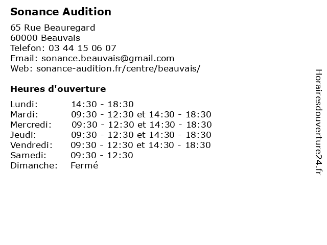 2 Benoit Audition Audioprothésiste Beauvais (Distance: 0,36 km) 42 Rue des Jacobins, 60000 Beauvais audioprothésiste, audition, beauvais, benoit 4 Audioprothésiste Krys Audition (Distance: 3,23 km) 22 Avenue Montaigne, 60000 Beauvais audiologie, audioprothésiste, audition, krys 5 Audika - Audioprothésiste Beauvais (Distance: 0,02 km) 59 Rue Beauregard, 60000 Beauvais appareil auditif, audika, audiologiste, audioprothésiste, beauvais, centre auditif, spécialiste audition 6 Vast RH Beauvais - Bilan de compétences (Distance: 0,25 km) 17 Rue du Pont de Paris, 60000 Beauvais beauvais, bilan, compétences, de, rh, vast |