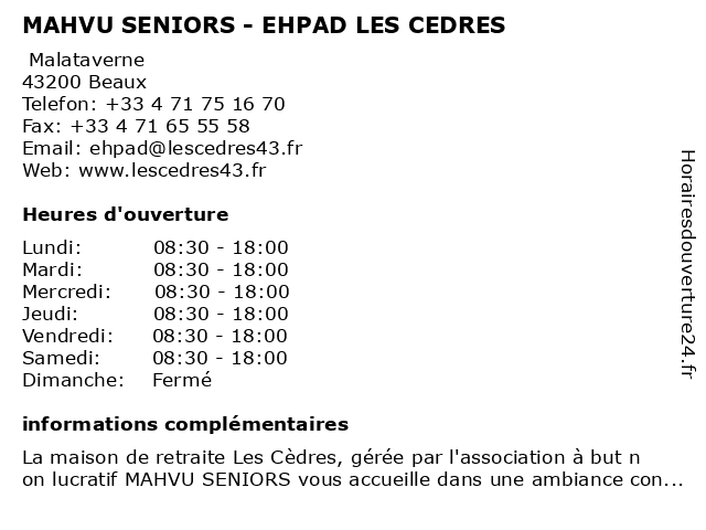 Termes de recherche pour MAHVU SENIORS - EHPAD LES CEDRES:les, cèdres, seniors, ehpad, mahvu |