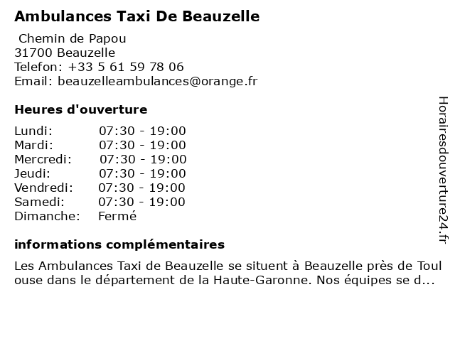 Termes de recherche pour Ambulances Taxi De Beauzelle:de, taxi, beauzelle, ambulances |