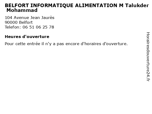 | Appeler BELFORT INFORMATIQUE ALIMENTATION M Talukder Mohammad | |