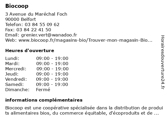 1 Biocoop (Distance: 3,35 km) 9 Avenue du Général de Gaulle, 90300 Valdoie biocoop, fruits et légumes, rayon frais, surgelés, vrac, épicerie salée, épicerie sucrée 2 Biocoop (Distance: 15,06 km) 6 Cours des Halles, 25200 Montbéliard biocoop, fruits et légumes, halles, les, rayon frais, surgelés, vrac, épicerie salée, épicerie sucrée 3 Thiriet - Surgelés (Distance: 3,33 km) - Route de Montbéliard, 90400 Andelnans alimentaire, alimentation, courses, distributeur, livraisons, produits, supermarché, supérette, surgelés, thiriet, épicerie 4 Picard (Contactez notre Service) (Distance: 15,48 km) 10 Rue Jean-Baptiste Pertois, 25200 Montbéliard contactez, la production française, les fruits, les légumes, notre, picard, produit développé en france, service, société française de produits surgelés, société: en cuisine, un magasin picard 5 Toupargel - Service de Livraison (Distance: 18,31 km) 20 rue de la Cray, 25420 Voujeaucourt courses, de, domicile, epicerie, frais, fruit, livraison, nourriture, service, surgelés, toupargel 6 Thiriet - Surgelés (Distance: 29,07 km) 1 Avenue d'Alsace, 68700 Cernay alimentaire, alimentation, courses, distributeur, livraisons, produits, supermarché, supérette, surgelés, thiriet, épicerie  |