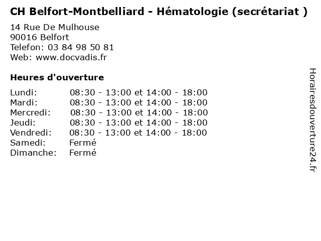 Termes de recherche pour CH Belfort-Montbelliard - Hématologie (secrétariat ):santé, belfort, ch, secretariat, docteur, consultation, hematologie, montbelliard |
