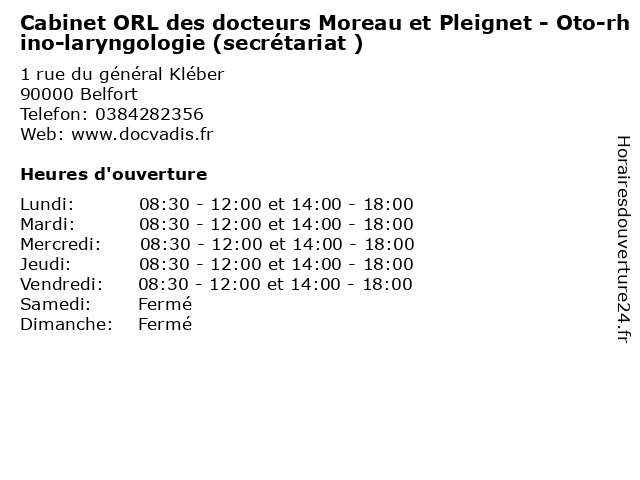| Lundi | 08:30-12:00 et 14:00-18:00 |