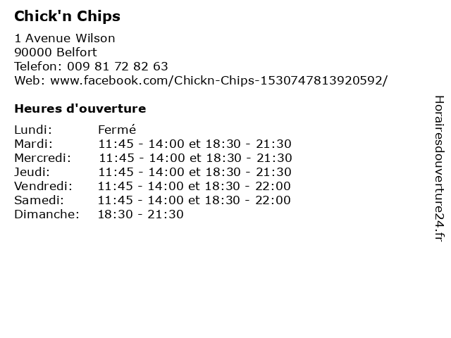 | Mardi | 11:45-14:00 et 18:30-21:30 |