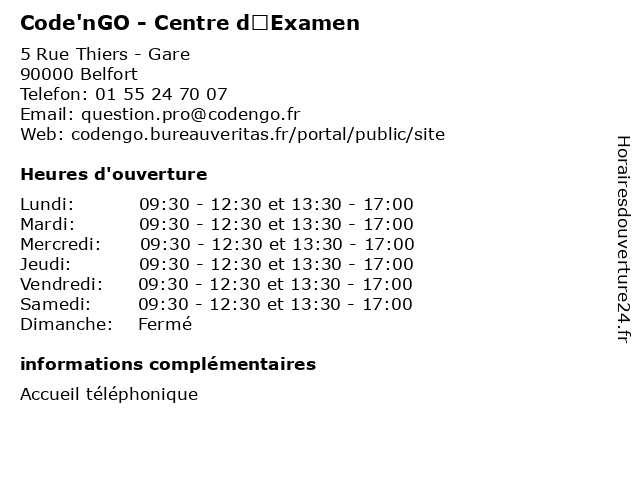 | Jeudi | 09:30-12:30 et 13:30-17:00 |