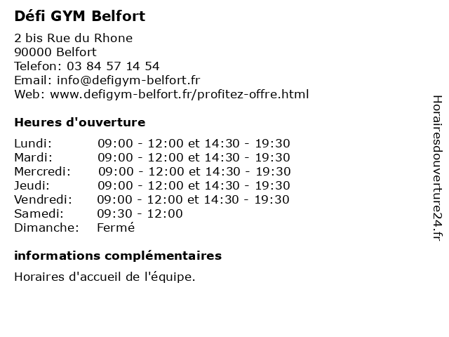 | Mardi | 09:00-12:00 et 14:30-19:30 |