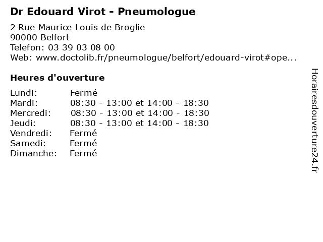 1 Edouard Sagot - Médecin généraliste (Distance: 2,37 km) 25 Avenue Capt de la Laurencie, 90000 Belfort docteur, edouard, generaliste, généraliste, medecin, médecin, sagot, soins 2 Dr Najib Bentaybi - Pneumologue - secrétariat (Distance: 5,18 km) 1 Rue des Étangs,, 90400 Andelnans bentaybi, dr, médecins, médicaments, najib, pneumologue, santé, secrétariat, spécialiste 3 Dr Claude Bertin - Pneumologue (Distance: 15,32 km) 23 Rue de l'Etuve, 25200 Montbeliard bertin, claude, dr, médecins, médicaments, pneumologue, santé, secrétariat, spécialiste 4 Dr Séverine Hordas-Weltzer - Allergologue (Distance: 12,74 km) 15 Rue du Stade Henri Monnier, 90120 Morvillars allergologue, consultation, docteur, dr, hordas, med, médecin, médecine, secrétariat, séverine, traitement, weltzer 5 Dr Séverine Hordas-Weltzer - Allergologue (Distance: 12,77 km) 15 Rue du Stade Henri Monnier, 90120 Morvillars allergologue, dr, hordas, médecin, médecine, médical, pharmaceutique, secretariat, séverine, traitement, weltzer 6 Dr Barbara Roos - Allergologue (Distance: 26,45 km) 1 Rue Saint-Jacques, 68800 Thann allergologue, barbara, consultation, docteur, dr, med, médecin, médecine, roos, traitement |
