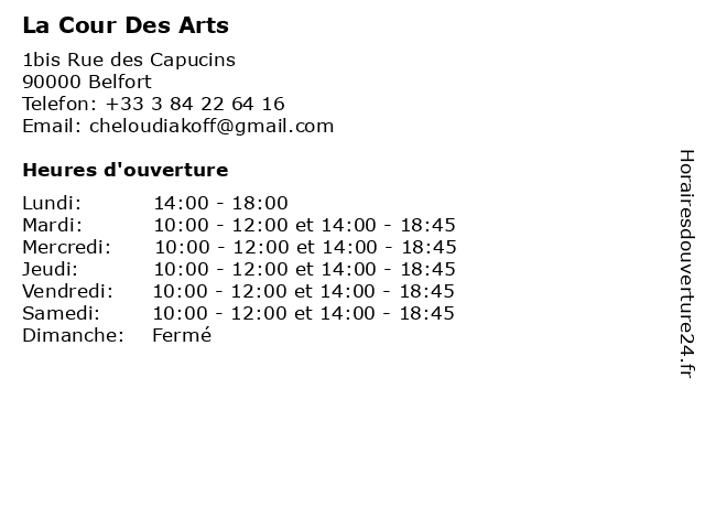 | Samedi | 10:00-12:00 et 14:00-18:45 |