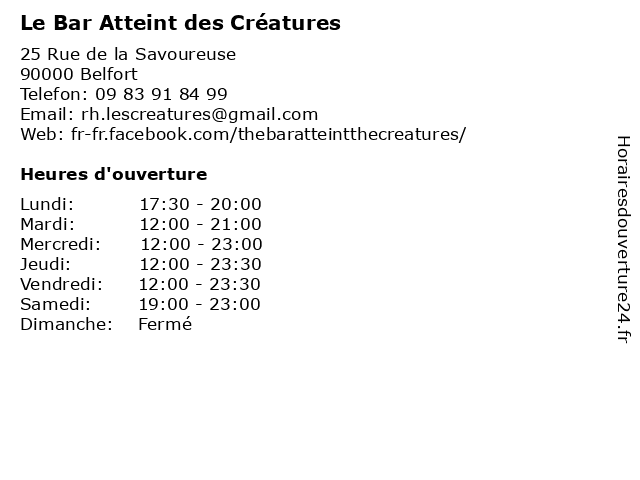 | Mercredi | 12:00-23:00 |